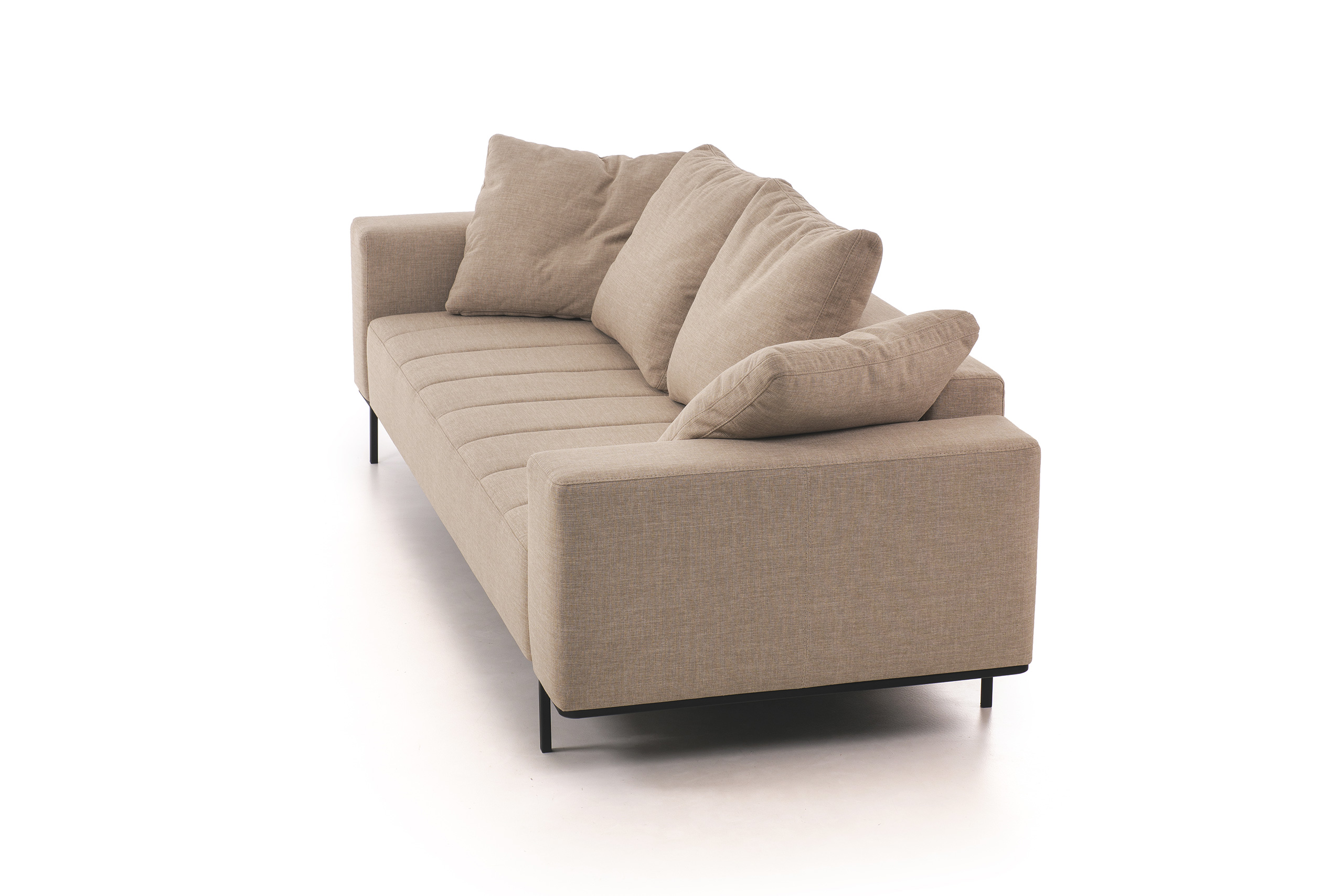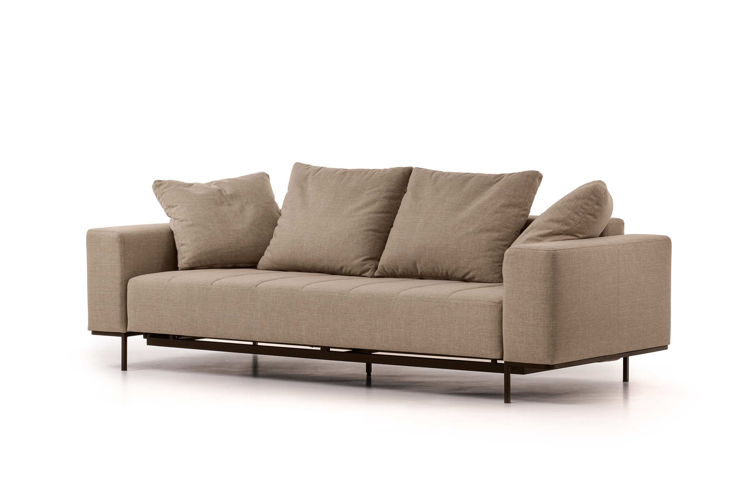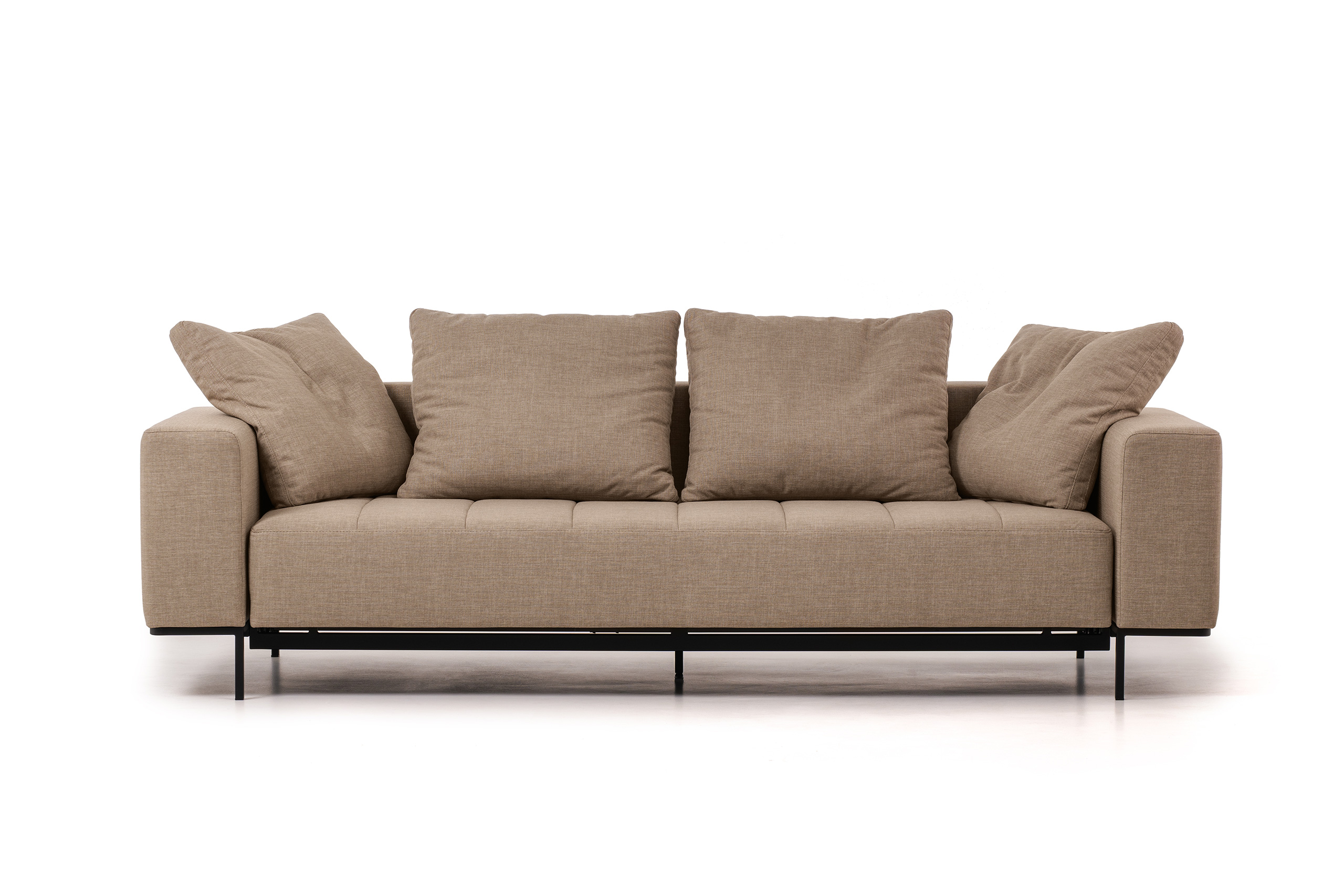 Casanova Fusion — диван, в котором спокойствие линий встречает современную элегантность. Его форма будто нарисована одним уверенным штрихом: четкие прямые подлокотники, идеальные пропорции и воздушность конструкции на тонких металлических опорах.