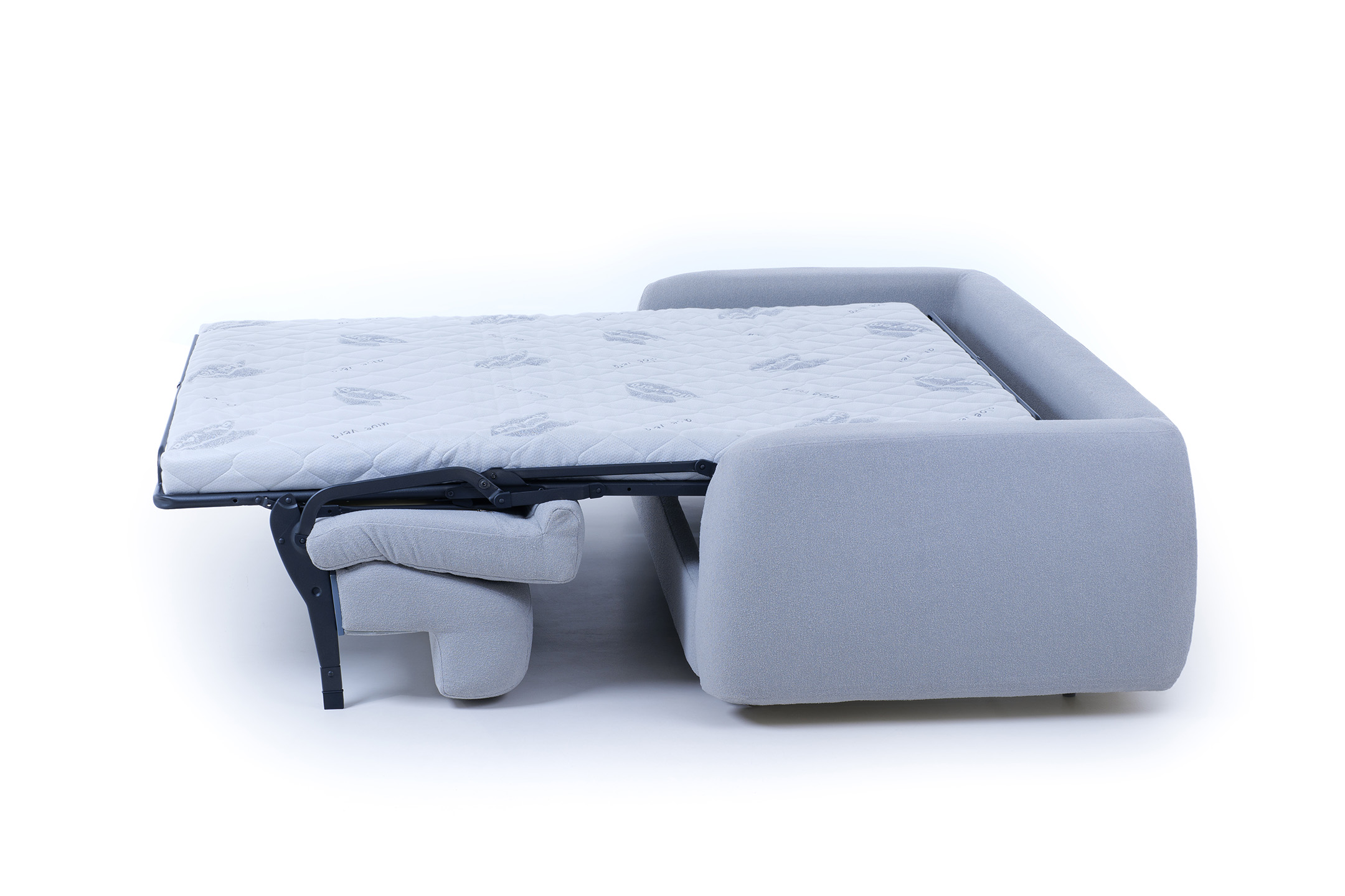 Металлический механизм двойного сложения используется как каркас для установки отдельных навесных деталей дивана. Опоры — металлический профиль, окрашенный полимерной краской.
